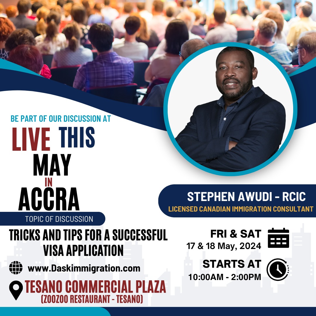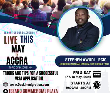 Don't miss out on this opportunity to turn your dreams into reality. Register now! Mark your calendars for May 17th and 18th and join us for the Visa Session organized by Dask Immigration Services.